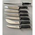 The DIEKENSEN Knives 8-Piece Set encompasses all essential butcher tools, featuring boning knives, skinning knives, sticking knives, butcher knives, breaking knives, sharpening steel, and a convenient knife bag. This comprehensive set is perfect for professional butchers and chefs, ensuring precision and efficiency in every cut.