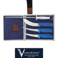 Victory 4 Piece Butcher Knife Combo Kit Blue Handle with J.West 12" Steel