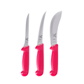 Each knife is designed for precision cutting and efficient meat processing. Ergonomic non-slip handles provide a secure grip for safe use in professional environments. Available in Black, White, Blue, and Pink handle colours.